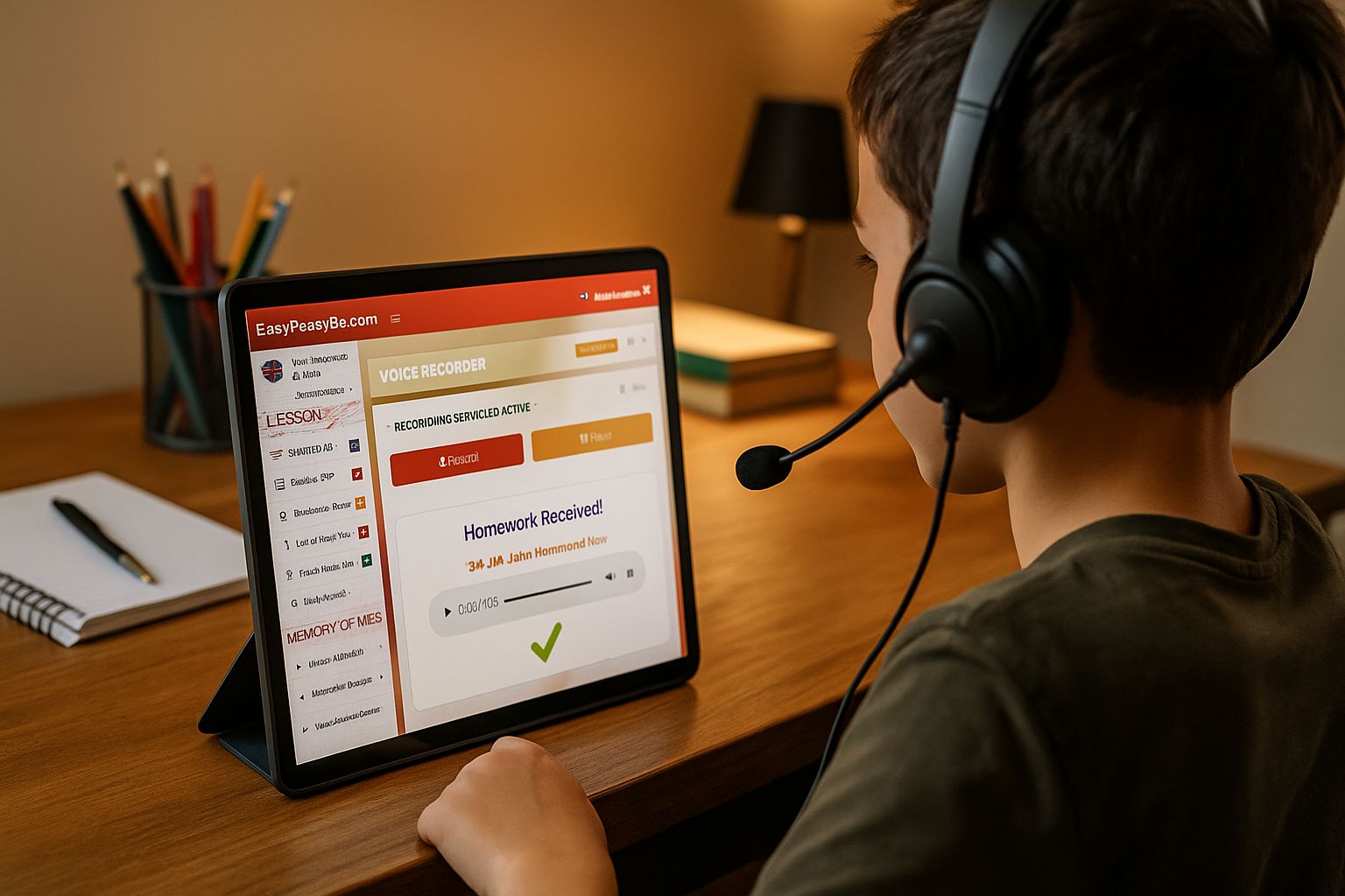 Easypeasybe.com is the central hub for students’ learning in class, at home, or on the go. They can access their lessons and instantly review studied content. Every new vocabulary word introduced in class is automatically added to their personal database, generating tailored exercises to expand their vocabulary and prepare confidently for assessments.